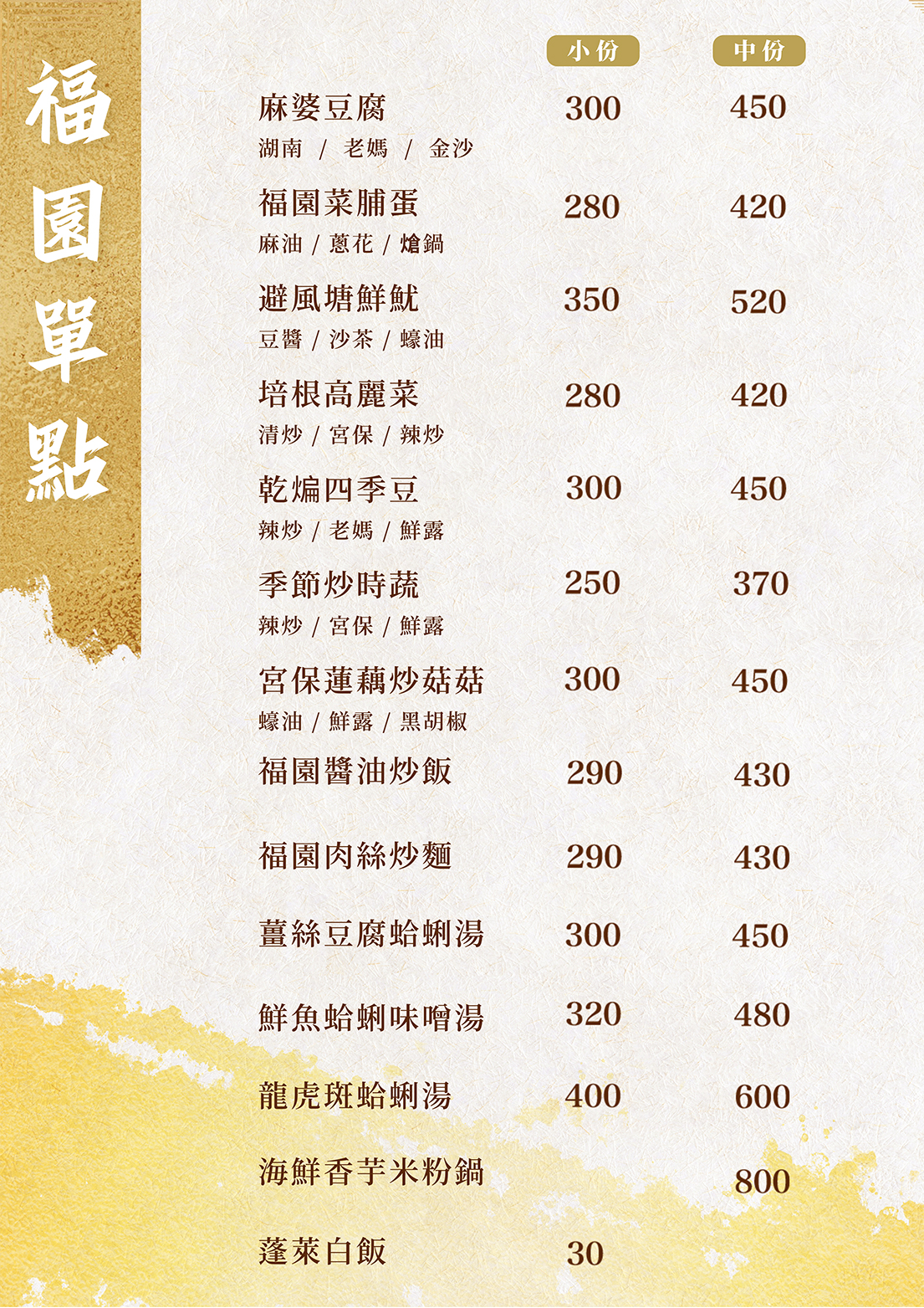 福園餐廳提供中式佳餚,秉持在創新中不失傳統,充分發揮中餐的魅力!且進行大膽嘗試推陳出新,讓顧客品嘗美食當下能感受到福園的用心。此外貴賓除了味覺與嗅覺上的享受,餐廳四周環繞著的青青草地,遠方的巴士海峽湛藍海景,讓您山水之美一眼盡收眼底!絕對是各個感官上的滿足呢。