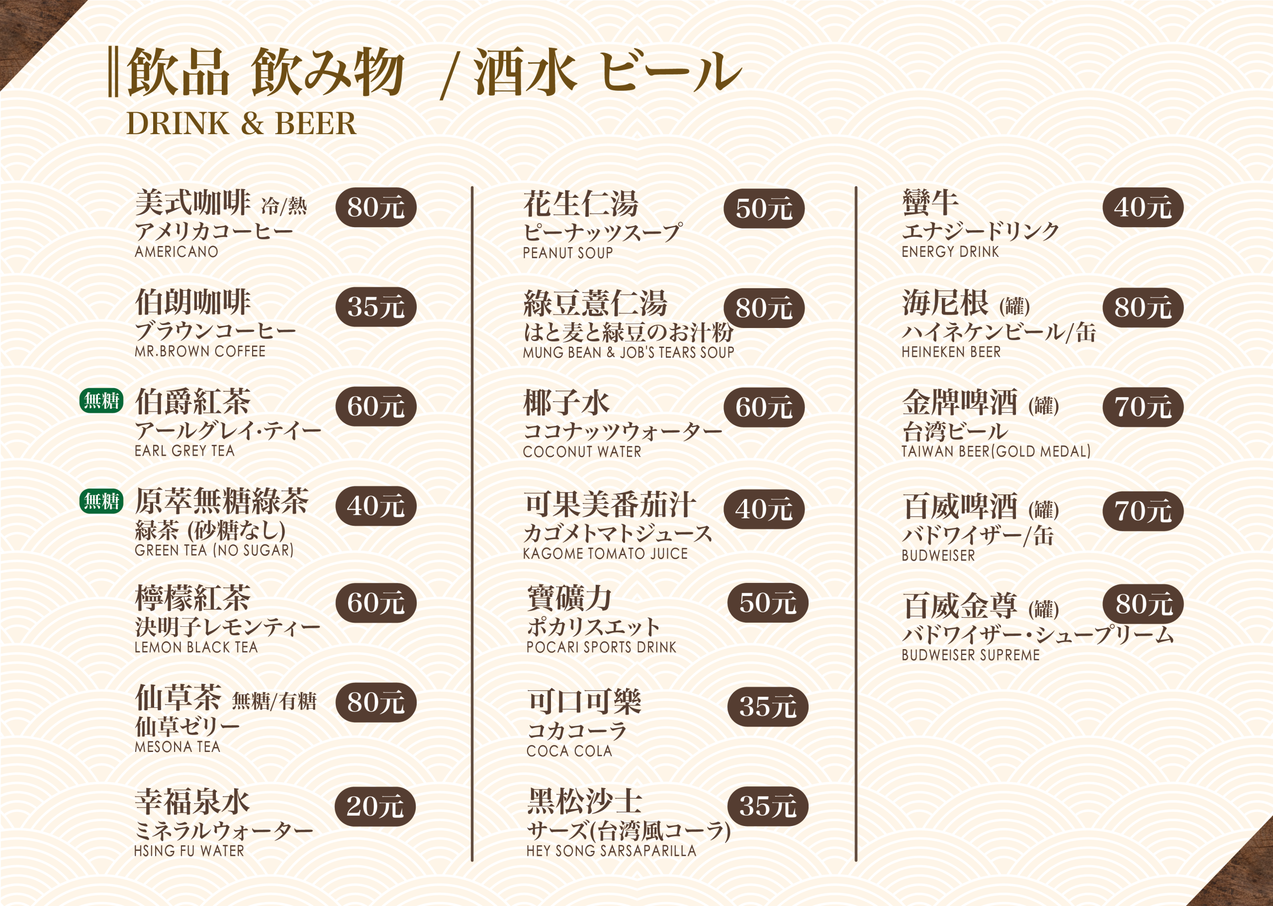無論擊球前補給或擊球後享用,我們為您準備了各式酒水與咖啡外,精選台灣經典小吃:鴨肉飯、刈包、牛肉麵,讓您兼顧輕食與飽足。